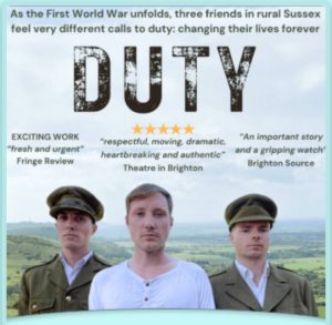 A play written by Susanne Crosby after many years of research into both the Great War and more specifically the Battle of the Boar’s Head. Premiered in Brighton last May the play has come back to the stage to coincide with this years remembrance weekend. Receiving critical acclaim when first produced, Ms Crosby said that audiences had been very moved by it with one member commenting afterwards how glad he was that the Battle was being given the recognition it deserves. Running for four nights ‘Duty’ is a must not just for RSx Association members but moreover for the general public.
